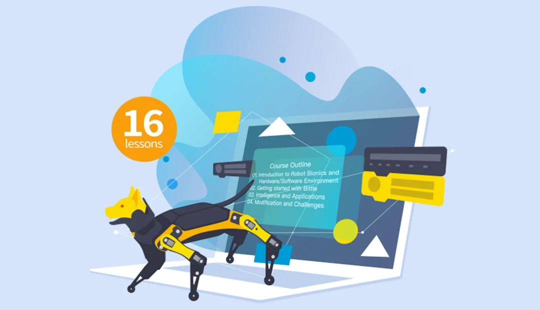 Our professional team of STEM educators has developed a graphical programming course for Bittle.It makes getting started programming for Bittle easy and accessible for everyone.The course assumes basicfamiliarity with graphical programming. If you are a complete beginner, you can start with Codecraft Introduction to Graphical programming course first!